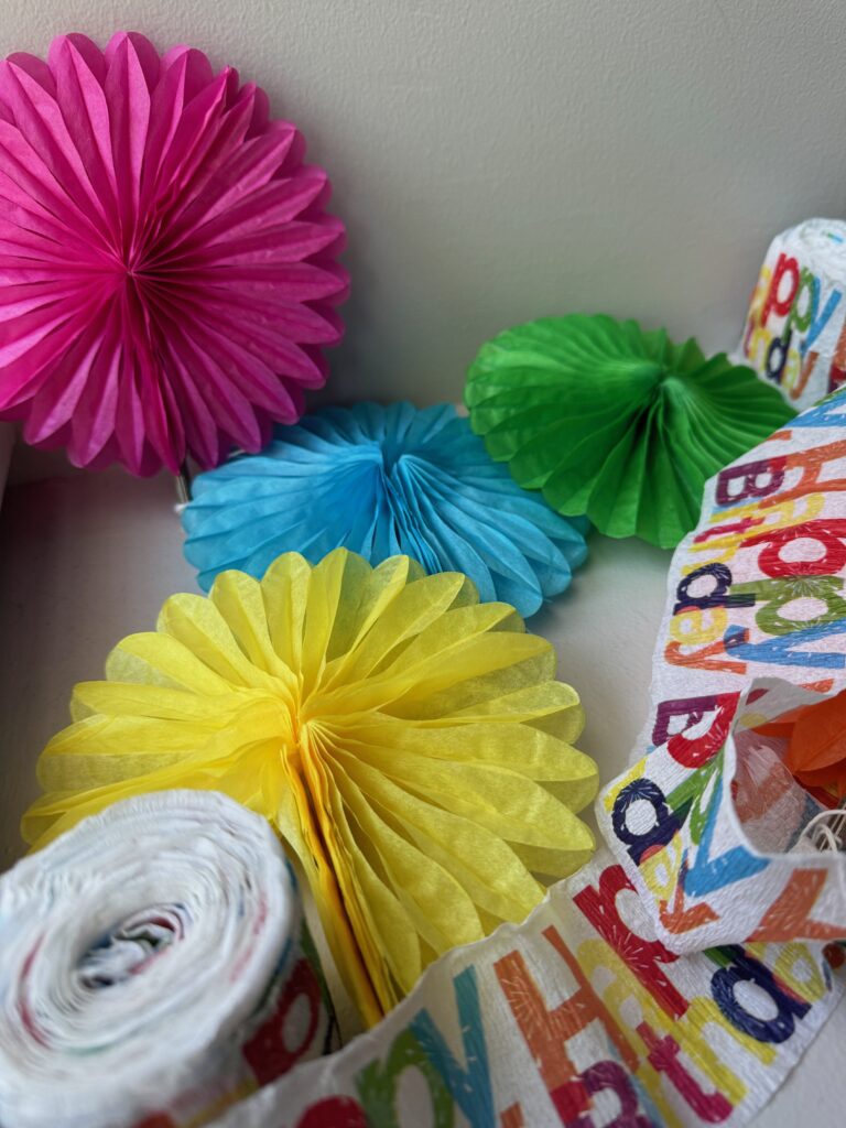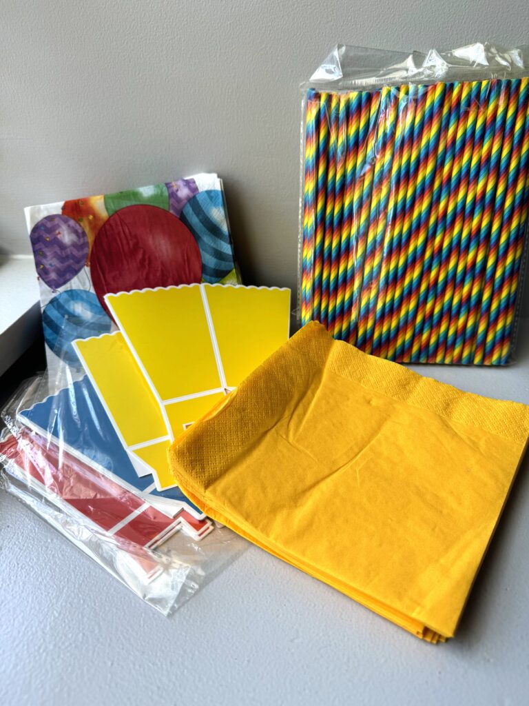 Reusable glasses or cups for drinks, plates and utensils for food, as well as napkins are all great choices. Decor and theme items can also be reused or passed along. We’ve been re-using ‘happy birthday’ streamers, paper accordion balloons, and other decor items for 3+ years now. Ask around: maybe you know someone who does the same and would be happy to lend you some things or pass them along if they’re no longer needed. Don’t forget your local BuyNothing group!