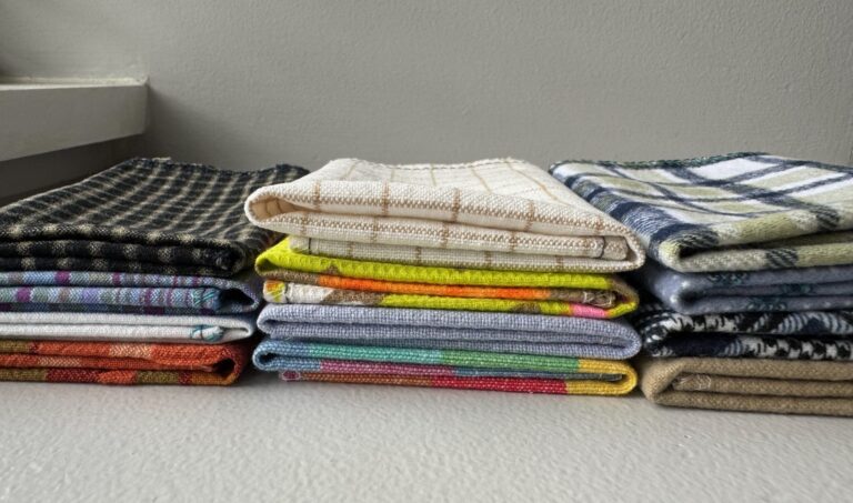 This is probably the most important thing: the napkins and the multipurpose cloths are made to be durable and easy to care for. There’s no need to be precious about them since they’re not detailed or made of a difficult-to-care-for fibre. They are made to be used in place of ‘disposable,’ single-use items but, you know, reusable. Stain-treat if you like but stains aren’t really a big deal. Just USE them! The prototypes are still going strong with minimal staining after nearly 4 years (napkins) and 18 months (multipurpose cloths).