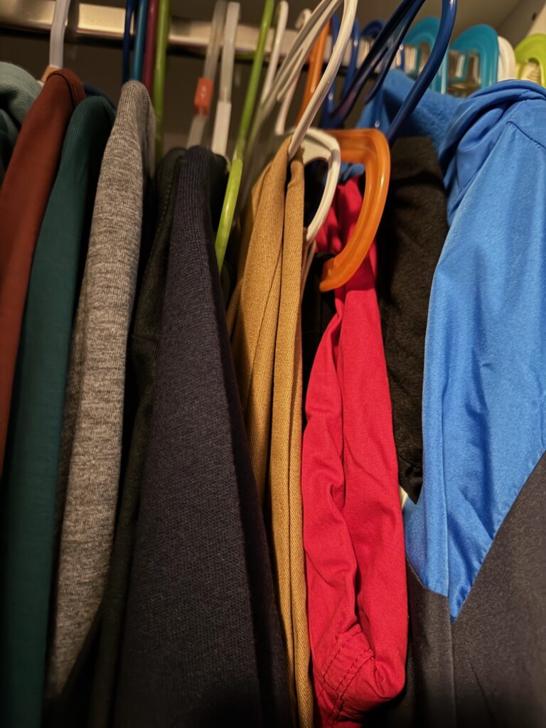 We start by pulling out all of the school clothes and fall/winter clothes that still fit in the spring. Then we do a try-on. I’m lucky that my child really seems to enjoy this process. If yours doesn’t, consider working in stages over a few days rather than in one long session. Growth spurts happen, sometimes without us realizing how much growth has occurred. The try-on is a key step to figuring out what we need to find for the upcoming school year.